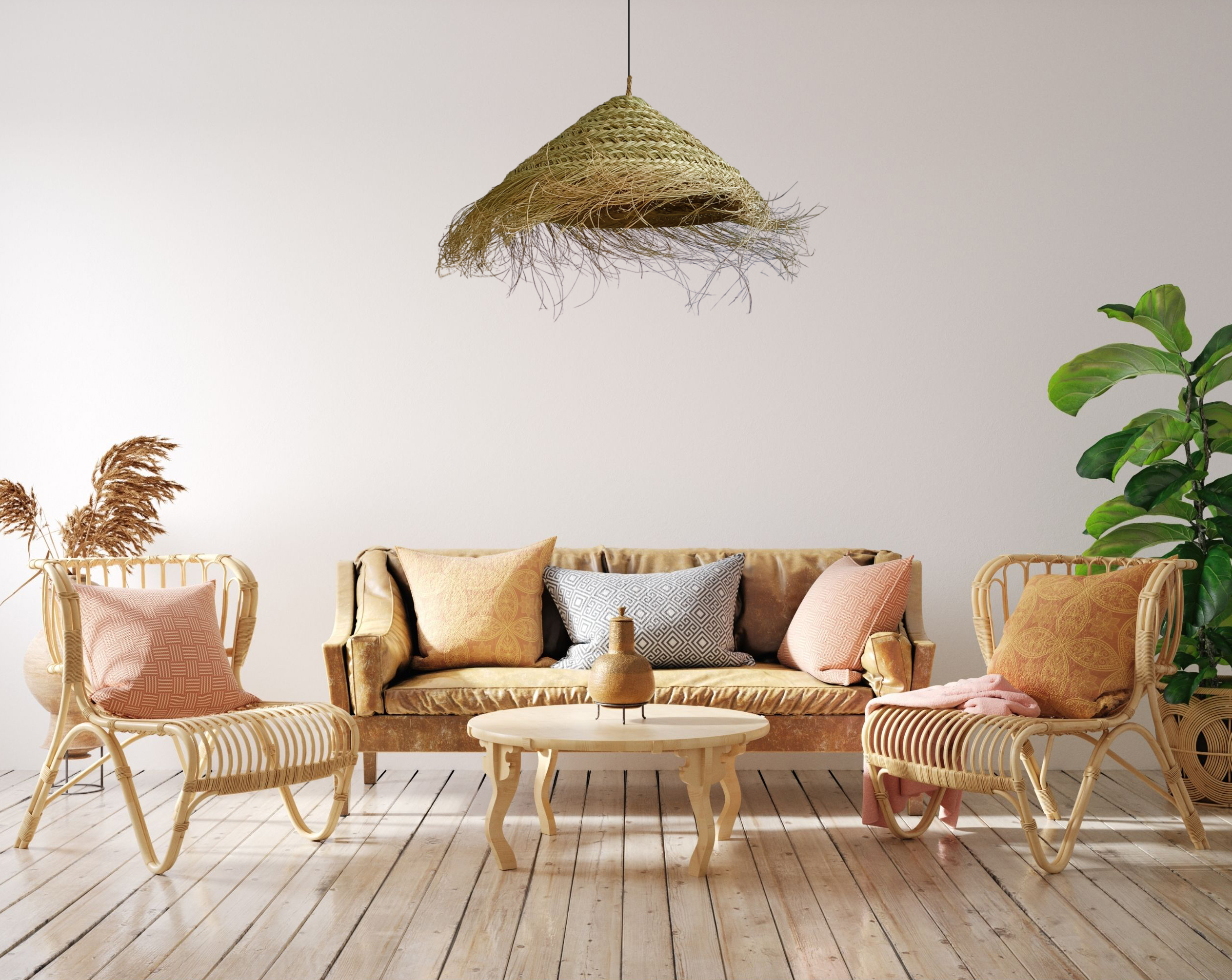 El mimbre, el ratán, el yute, el bambú o esparto, son texturas naturales que en los últimos años se han venido integrando sin esfuerzo en la decoración de interiores, quedando atrás esa costumbre de relegarlos a las terrazas, balcones y demás espacios exteriores por su alta resistencia ante las condiciones meteorológicas adversas.