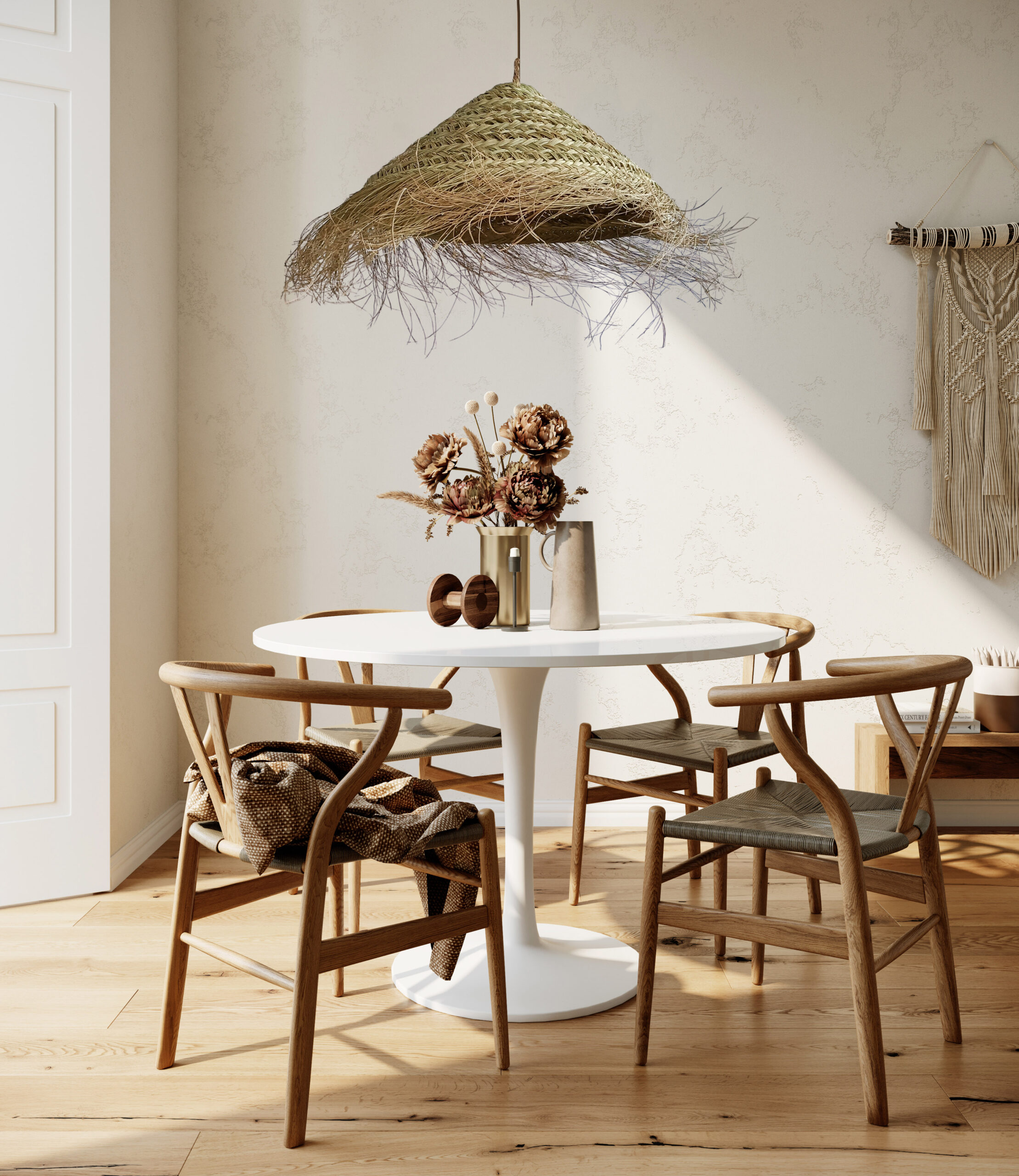 El mimbre, el ratán, el yute, el bambú o esparto, son texturas naturales que en los últimos años se han venido integrando sin esfuerzo en la decoración de interiores, quedando atrás esa costumbre de relegarlos a las terrazas, balcones y demás espacios exteriores por su alta resistencia ante las condiciones meteorológicas adversas.