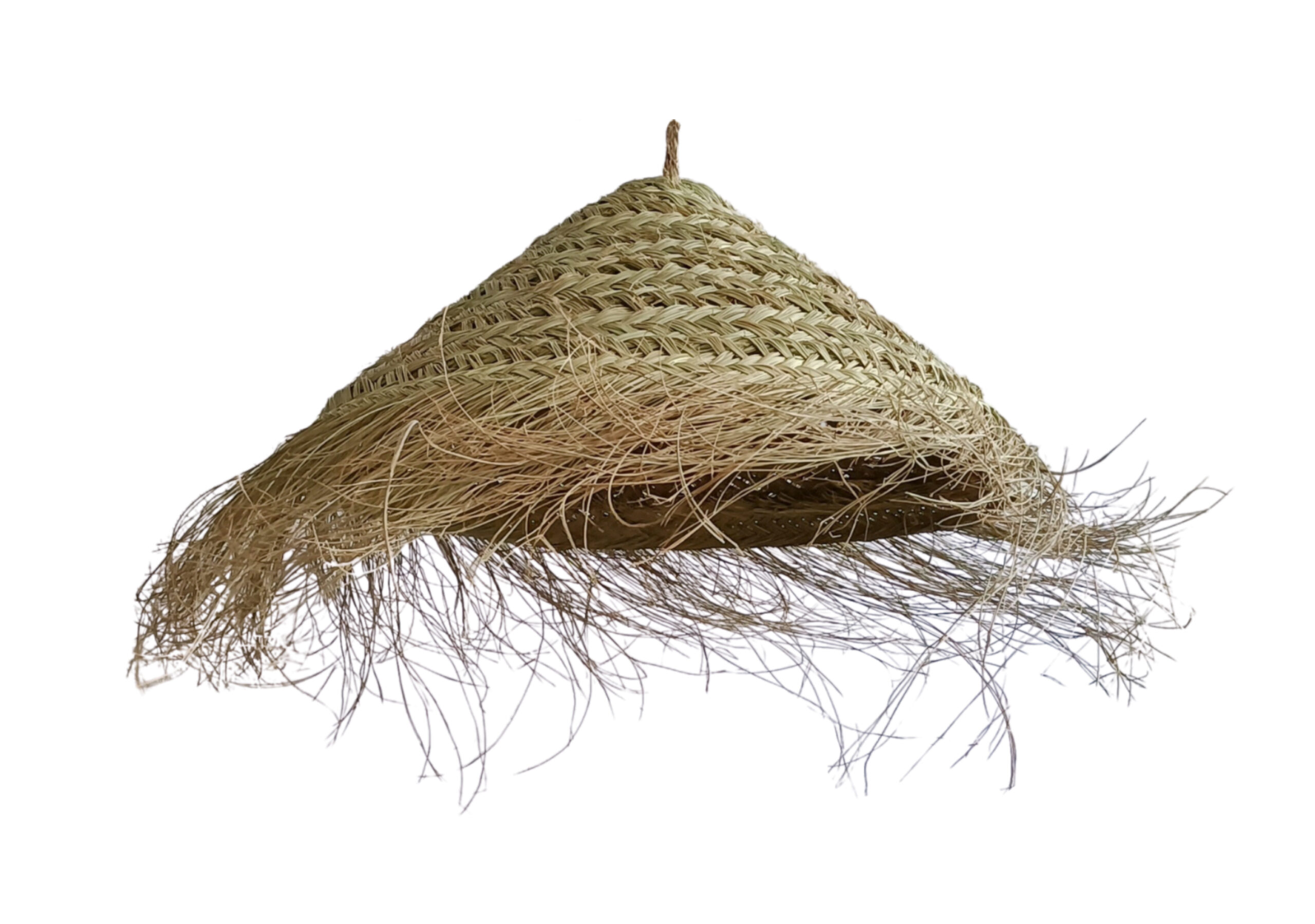 ⦁ Fabricación artesanal con hojas de palma natural trenzada. Acabados con flecos. Forma circular